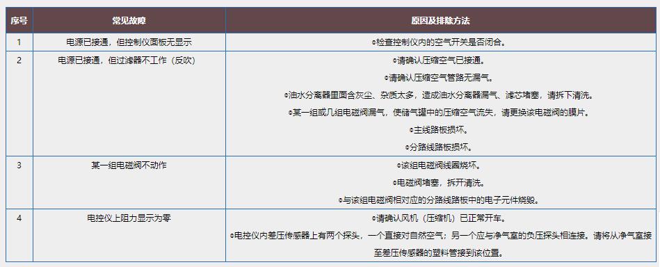 自潔式空氣過濾器常見故障的原因及排除方法: