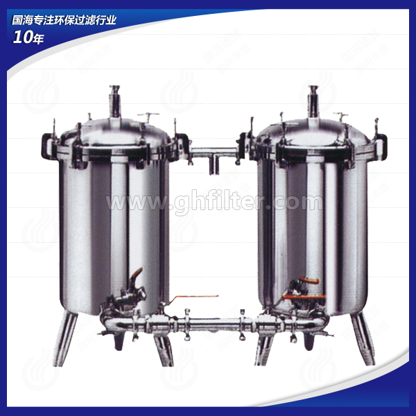 雙聯(lián)過濾器又稱并聯(lián)切換過濾器,濾筒內(nèi)裝有濾袋和濾網(wǎng)支撐籃;頂部裝有放氣閥,供過濾時排放濾器內(nèi)空氣作用。上蓋與濾筒連接采用快開式結(jié)構(gòu),更方便清洗(更換)濾袋,三只可調(diào)節(jié)式支腳可使濾器平穩(wěn)放置在地面上。連接管路采用活接或卡箍連接方式,進出料閥門采用兩個三通球閥,耐壓耐溫,將兩個單筒過濾器組裝在一個機座上,清洗過濾器時不必停車,保證其連續(xù)工作,是不停車生產(chǎn)線過濾裝置選擇,本過濾器的過濾元件,除采用不銹鋼濾芯外,亦可采有優(yōu)質(zhì)蜂房式脫脂纖維棉,可濾掉粒徑1μ以上的顆粒,本過濾器亦可單筒使用,此時只需去掉共同機座,其余尺寸不變。