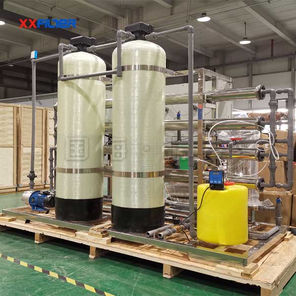 答:1、原水→增壓泵→精砂過濾器→活性碳過濾器→軟水器→反滲透主機→紫外線殺菌器→純水箱→用水點(工藝電導率≤10μS/CM)