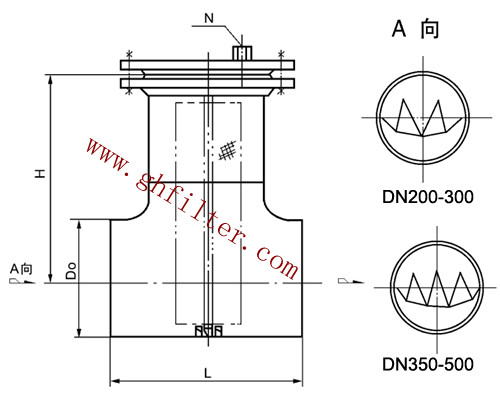DN150公稱直徑—直通T型過濾器系列直通連接尺寸