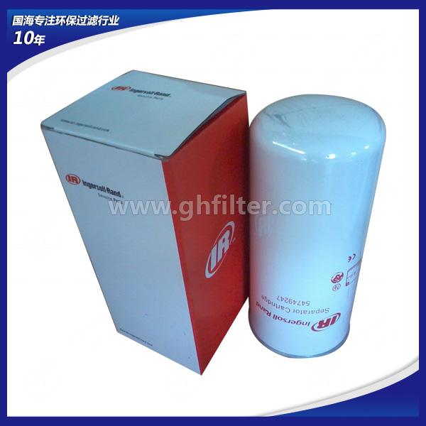 從空壓機(jī)出來的壓縮空氣夾帶大大小小的油滴,大油滴通過油氣分離器易于分離,而小油滴(懸浮油微粒)則必須通過油氣分離器的微米級(jí)玻纖濾料層過濾。油氣分離濾芯54749247 —— 英格索蘭螺桿式空壓機(jī)三濾系列采用較先進(jìn)的防腐高效的超細(xì)纖維凝聚材料作為過濾主體,使壓縮機(jī)輸出空氣中3μm以上的固體顆粒能全部被濾除,而極微小的約0.01-1μm的油水氣溶解體在通過濾芯時(shí)被凝聚成較大的油滴,積聚在濾芯底部,再通過濾芯底部凹處的回油管虹吸返回至潤滑系統(tǒng)從而使壓縮機(jī)排出更加純凈,無油的壓縮空氣。新鄉(xiāng)市國海濾器有限公司是一家專業(yè)技術(shù)生產(chǎn)型企業(yè),多年致力于液壓和氣動(dòng)系統(tǒng)凈化的研究和生產(chǎn)工作,生產(chǎn)出的54749247 油氣分離濾芯完全可以互換原裝產(chǎn)品,請放心采購使用。