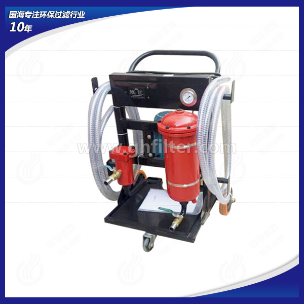 手推式濾油小車又叫便移式濾油機(jī)、液壓油濾油機(jī)、濾油小車、精細(xì)濾油車,新鄉(xiāng)市國海濾器生產(chǎn)制造的濾油車可以作為液壓系統(tǒng)和潤滑系統(tǒng)中與各類用油設(shè)備的油液作灌注或定期過濾。手推式濾油小車對(duì)節(jié)油與回收臟油具有一定的經(jīng)濟(jì)效果。手推車型,體積小,移動(dòng)方便,結(jié)構(gòu)堅(jiān)固耐用,可以很方便地移動(dòng)至液壓設(shè)備旁邊向液壓系統(tǒng)注油并同時(shí)進(jìn)行過濾,也可周期性的對(duì)液壓系統(tǒng)油液進(jìn)行外循環(huán)過濾。