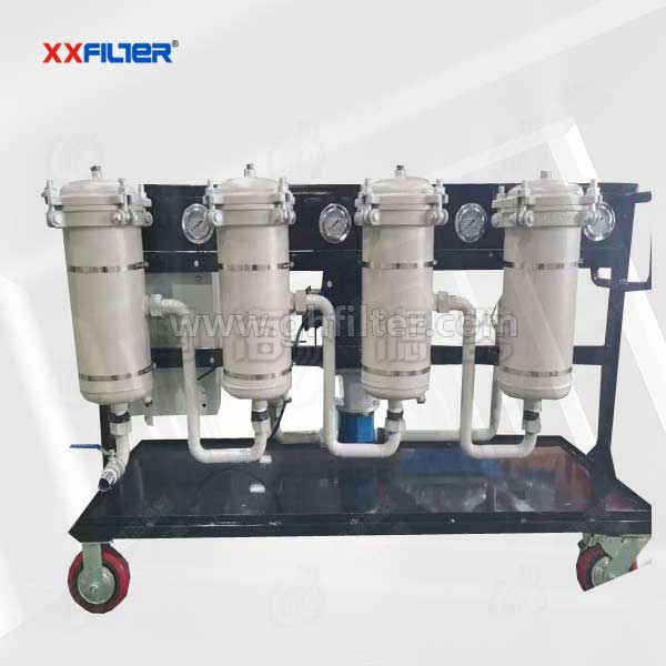 LYC系列多級高精度濾油機(jī)的油液經(jīng)吸油口粗過濾器過濾,進(jìn)入泵后的五級精過濾器,經(jīng)過該液壓油濾油機(jī)五級過濾后,油液可達(dá)到較高的清潔度??筛鶕?jù)實(shí)際工況需要設(shè)置,定制成多級過濾,泵前一級粗濾,泵后四級或者五級精細(xì)過濾。國海濾器也可根據(jù)工況環(huán)境定制多級高精度防爆濾油機(jī),貨期短,價格優(yōu)惠。五級過濾濾油機(jī)是一種過濾液壓油、凈化油、保持液壓系統(tǒng)安全有效運(yùn)行的一種高精度濾油車。不僅可以作為液壓系統(tǒng)注入新油的過濾設(shè)備,也可以定期過濾液壓系統(tǒng)中雜質(zhì)的專用設(shè)備。小車式設(shè)計、移動方便快捷,只需要調(diào)配不同過濾精度的濾芯就可以達(dá)到不同精度的過濾效果,對油液各項(xiàng)技術(shù)指標(biāo)均無影響。