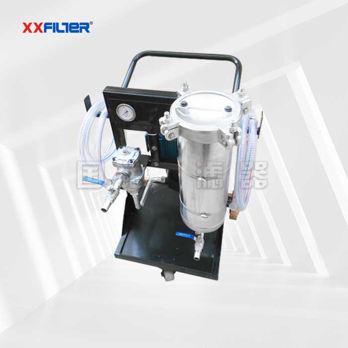 兩級不銹鋼濾油機一級粗濾器可濾除較大的顆粒雜質(zhì),二級精濾器可濾除精細顆粒,液壓油濾油機包括一個由電機驅(qū)動的專用齒輪泵,高壓管路保護裝置,吸油口粗過濾器保護油泵,面板上裝有壓力表,濾油器殼體采用快開裝置,可以迅速快捷的打開上蓋,更換濾芯。